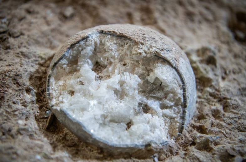 अन्वेषकहरूले पत्ता लगाएका छन् कि यी क्रिस्टलाइज्ड अण्डा जीवाश्महरूको आन्तरिक क्रिस्टलीय खनिज प्रकार ०.२ ०.४ सेन्टिमिटरको कण आकारको क्याल्साइटमा रहेको छ।